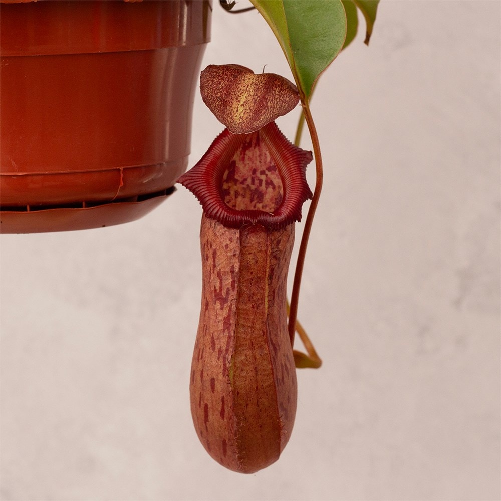 Nepenthes thrive in warm, humid, and partly shady environments, daytime temperatures should be maintained around 18-27°C (65-80°F), with a minimum of 7°C (45°F) at night, making them ideal for year-round indoor cultivation. They prefer being watered with rainwater, and many species benefit from sitting in a saucer filled with 2.5-5cm (1-2in) of water during the growing season. In winter, it's best to keep the compost damp rather than wet. Never add water into the pitchers as this can cause them to shrivel and die. Pot on in spring using a specialist carnivorous compost.