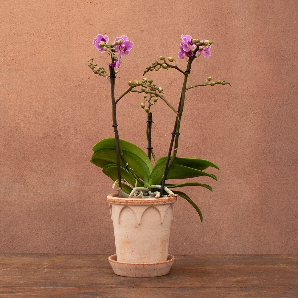 Ideal for a sunny kitchen windowsill or a well-lit living room, this orchid thrives where it can catch indirect light without direct sun. Its compact size also makes it perfect for bedside tables or office desks, adding colour and structure to smaller spaces. Flowers appear in succession, so even a single plant can provide months of continuous blooms.
