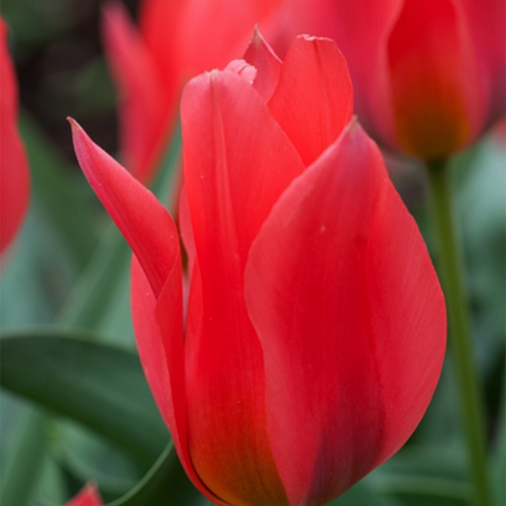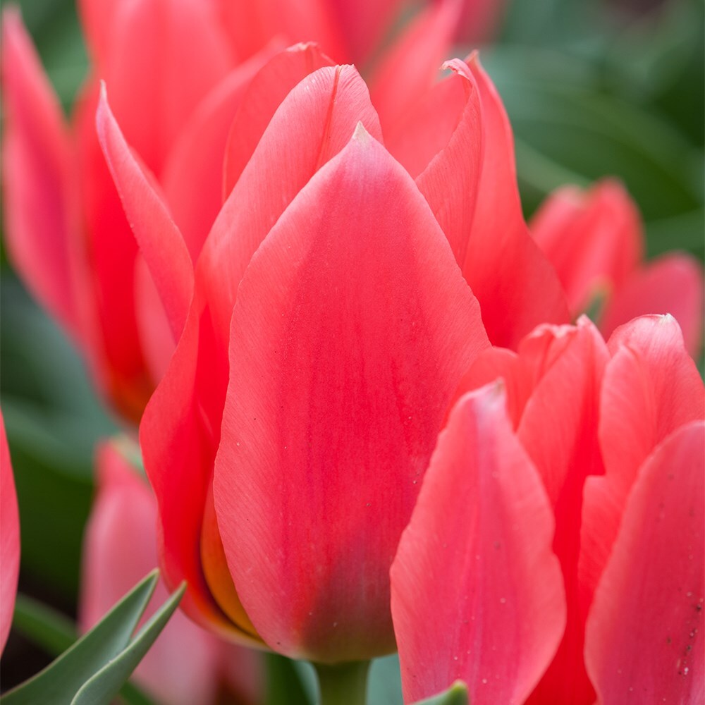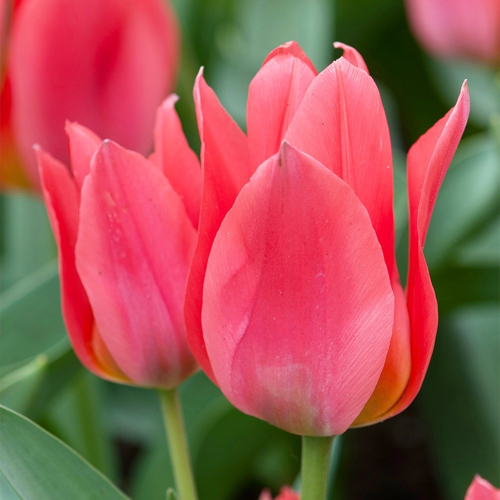 Bright, cheerful colour and compact form make these greigii tulips a stand-out choice for lifting the garden after winter, with rich coral-red blooms that glow against handsome, purple-mottled foliage.