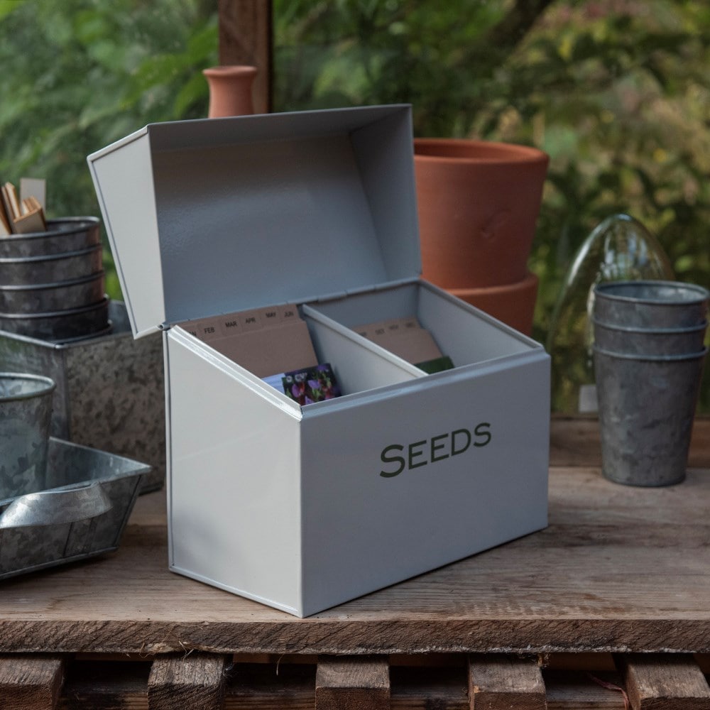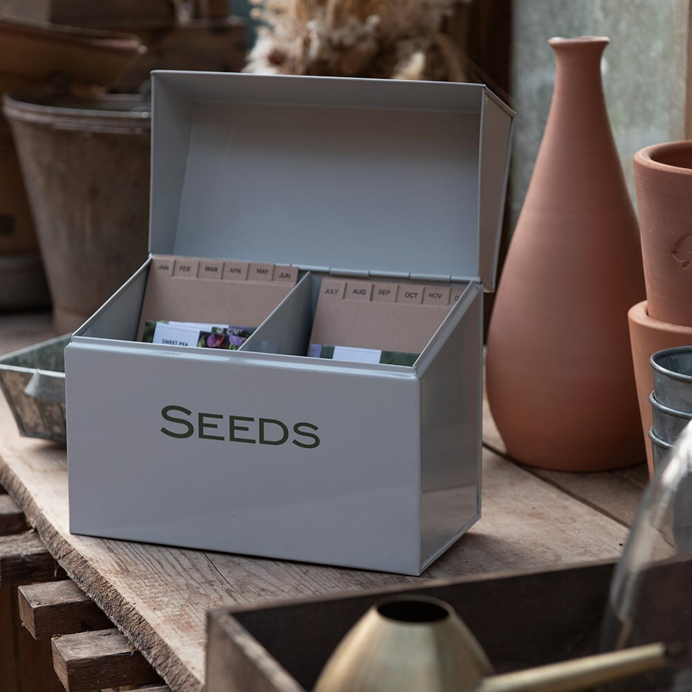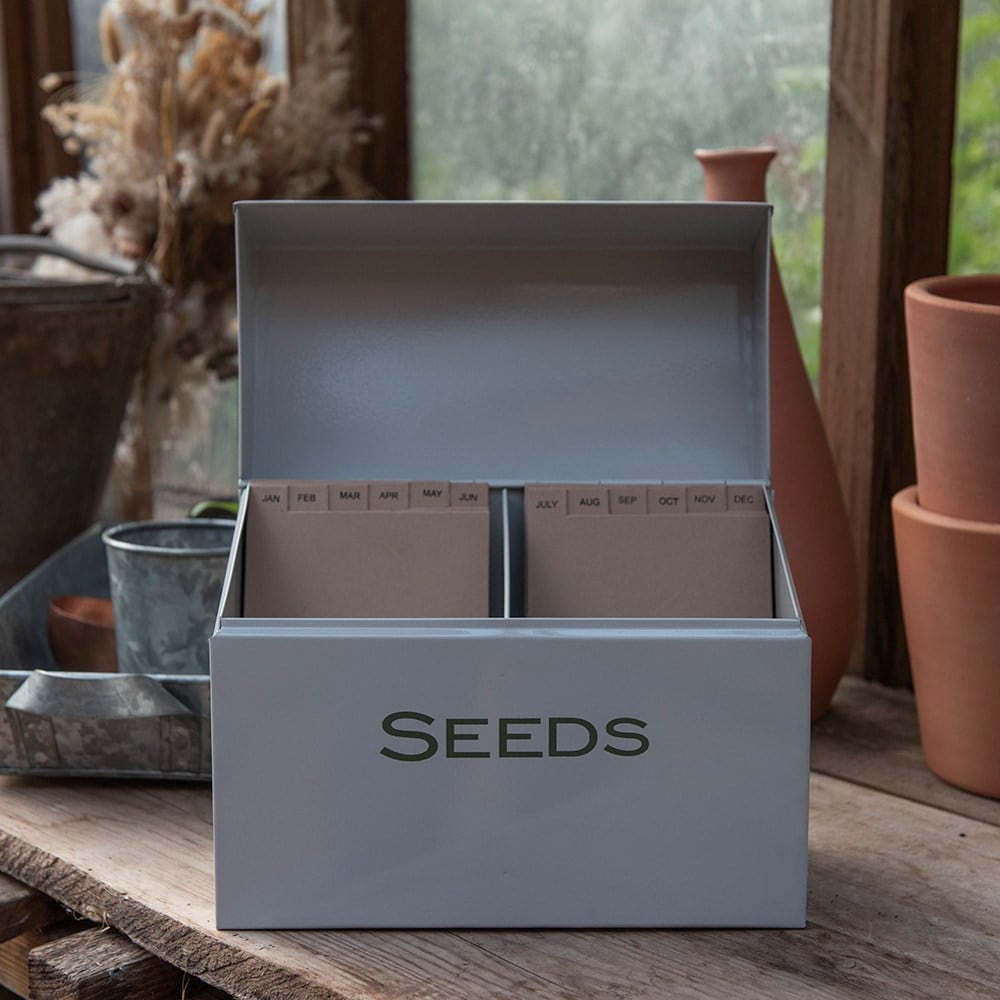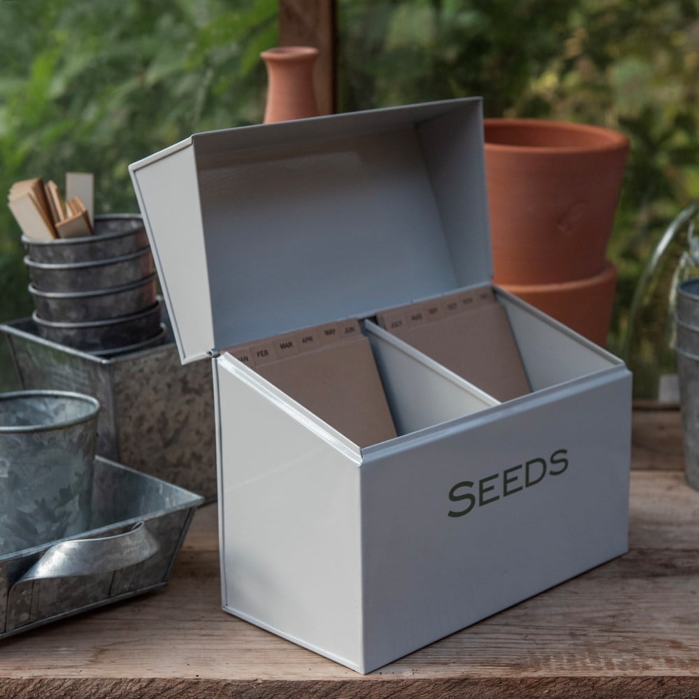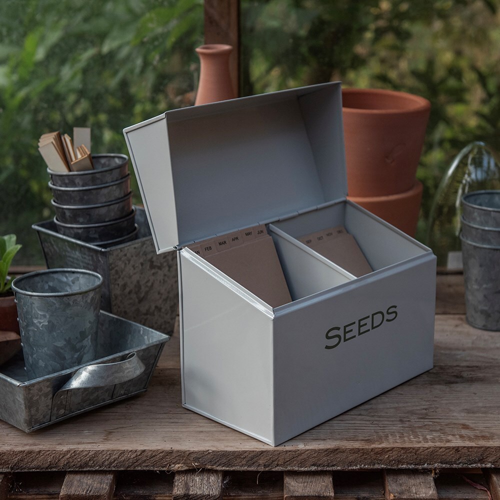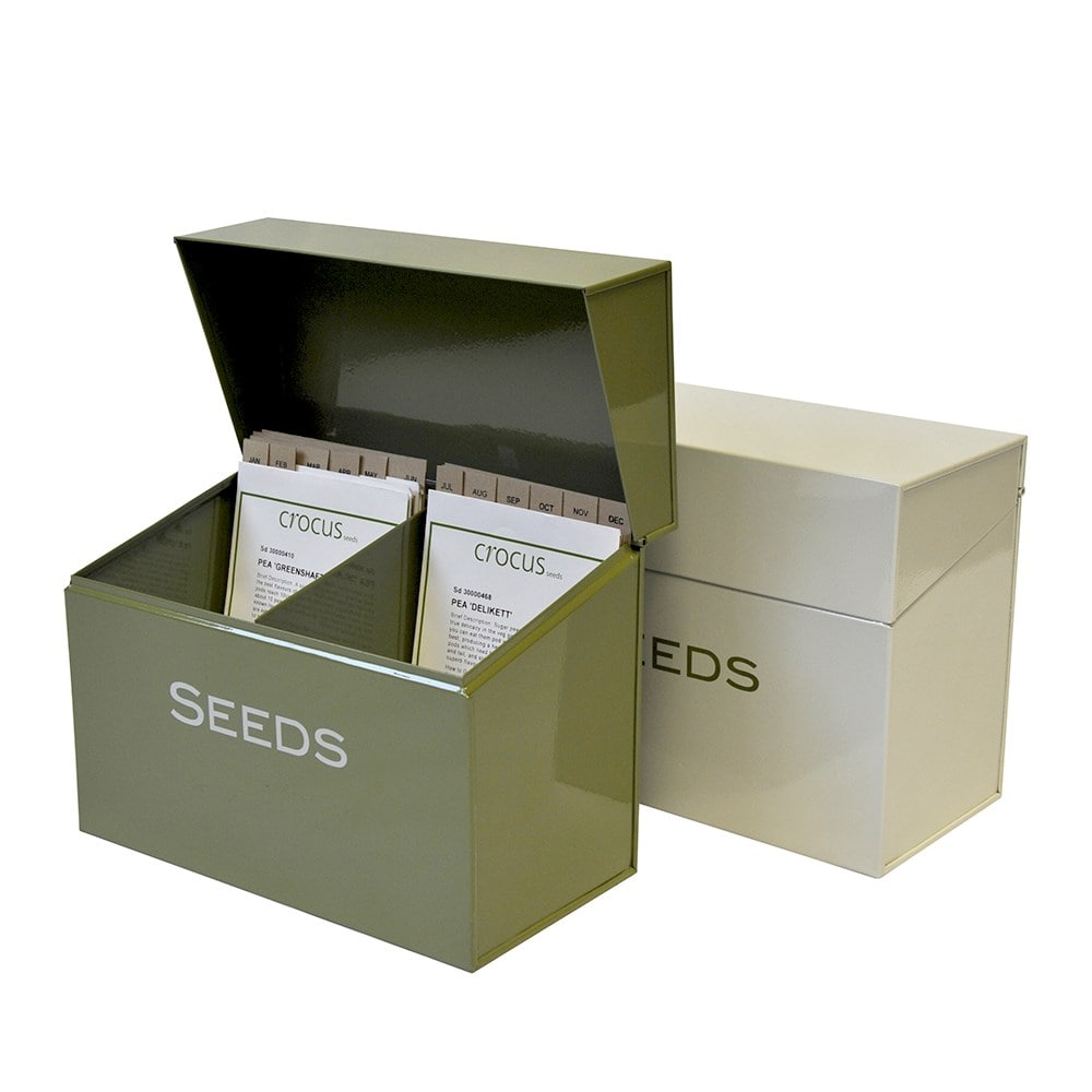 Made from tough galvanised steel with a rust-resistant powder coating, the boxes are big enough to hold the largest seed packets - even awkward bean ones that won't fit into most seed storage tins.