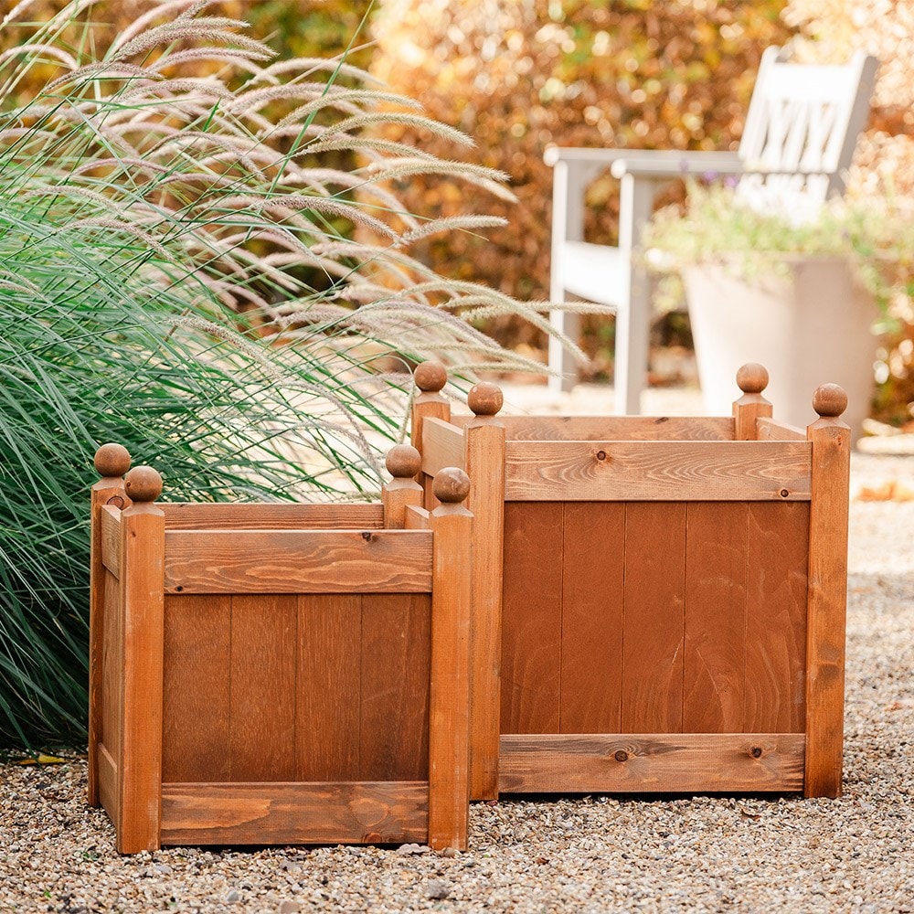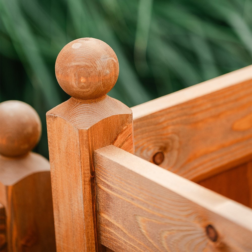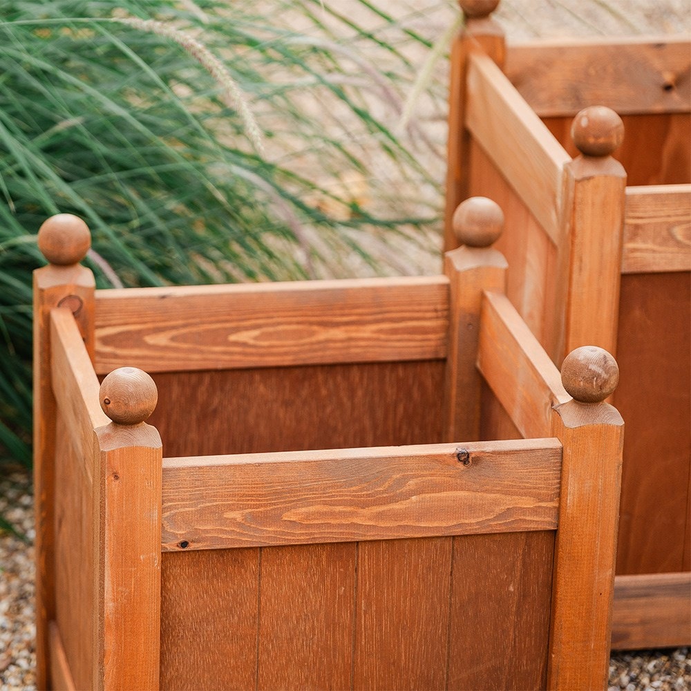 These classic wooden planters are made in the UK from heavy-duty timber, with mortise and tenon joints for strength and a beech wood stain that protects the surface while showing off its grain. Each comes with a recycled fitted liner so you can plant straight in.
