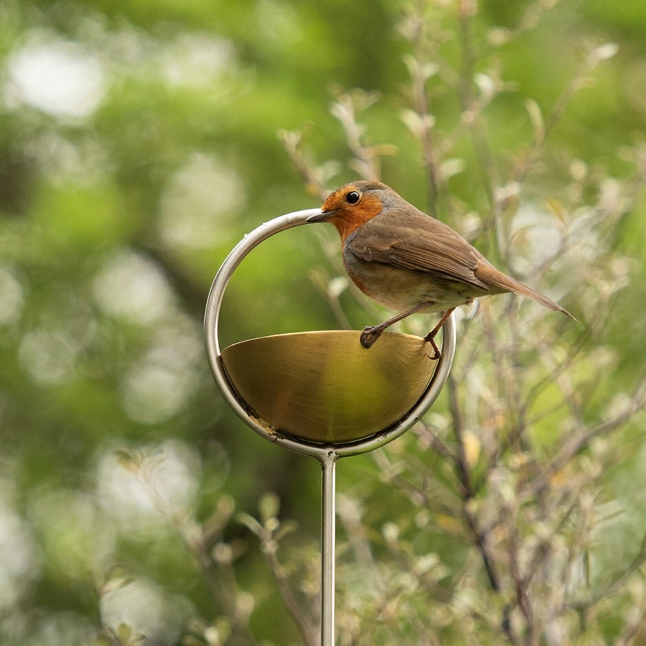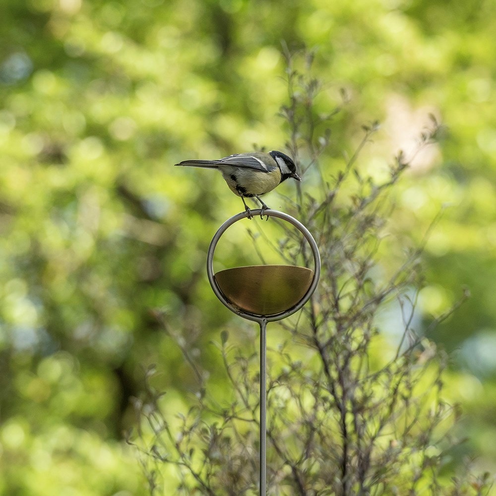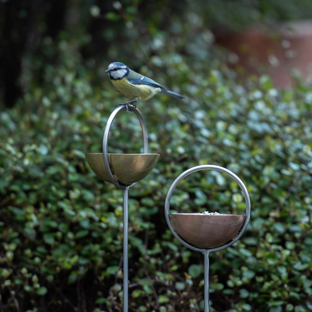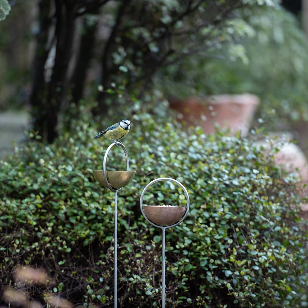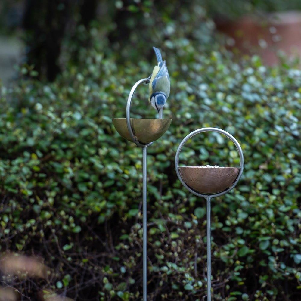 These staked feeding bowls are really simple to fill and easy for birds to access. We’ve watched little birds dip into the bowl and relax on the perch between mouthfuls. Though bigger birds can fit in if they try, we find the ring tends to act as a slight deterrent.