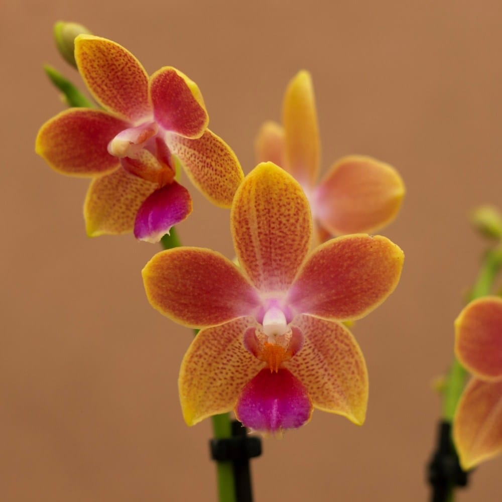 Phalaenopsis Aromio Spring stands out for its delicate fragrance, rich colour contrast, and long flowering period, bringing a bright, exotic touch to indoor displays.